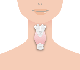 甲状腺はくびの前側、のどぼとけ(甲状軟骨)のすぐ下のところにある蝶ネクタイの様な形をした臓器です。この小さな臓器から甲状腺ホルモンという重要なホルモンが作られ、分泌されています。甲状腺ホルモンは体の代謝のバランスを整える大切なホルモンです。