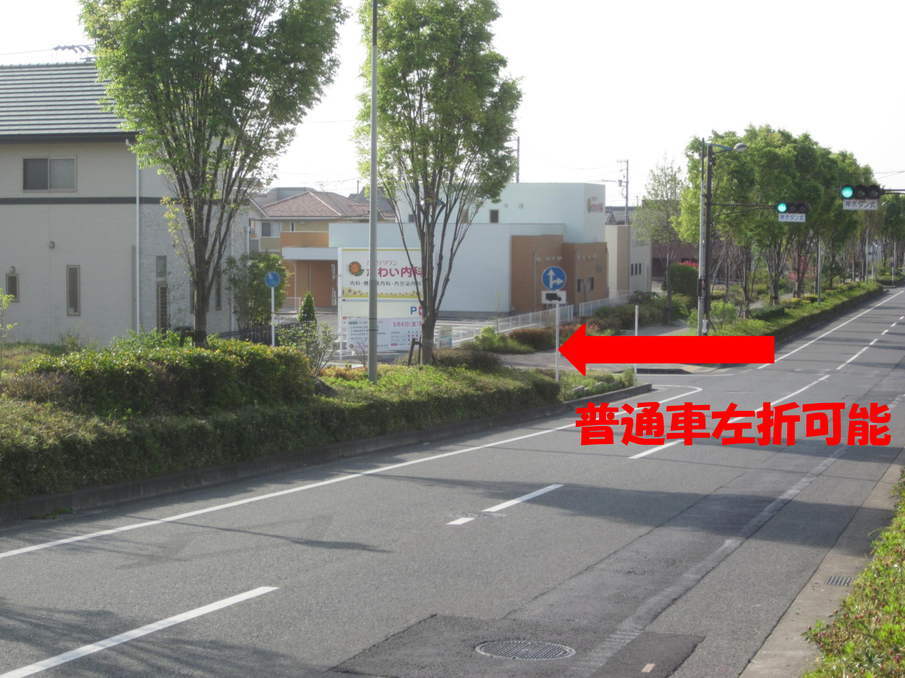 メイン通りからは、普通車であれば押しボタン信号の交差点で右折・左折ともに可能です。